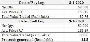 On January 8, 2020, orders were executed in the trading account of Ms. Jaya Hemant Ghai to buy 52,000 shares of Aptech Ltd. and thereafter the entire 52,000 shares were sold on January 9, 2020 i.e., the buy recommendation day, between 9:15:08 am and 9:22:20 am. The details of the said trades are as follows:
