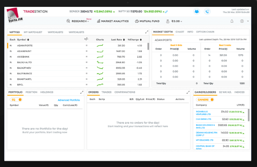 You can see the historical data for up to 5 Years or more. On the right side of the screen you can easily place the intraday or delivery trades in a click.
