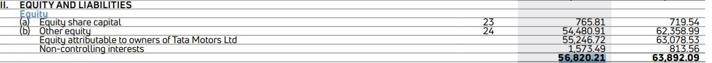 Now, if check the Balance sheet will get the TML total shareholder’s equity, check out the below snapshot: